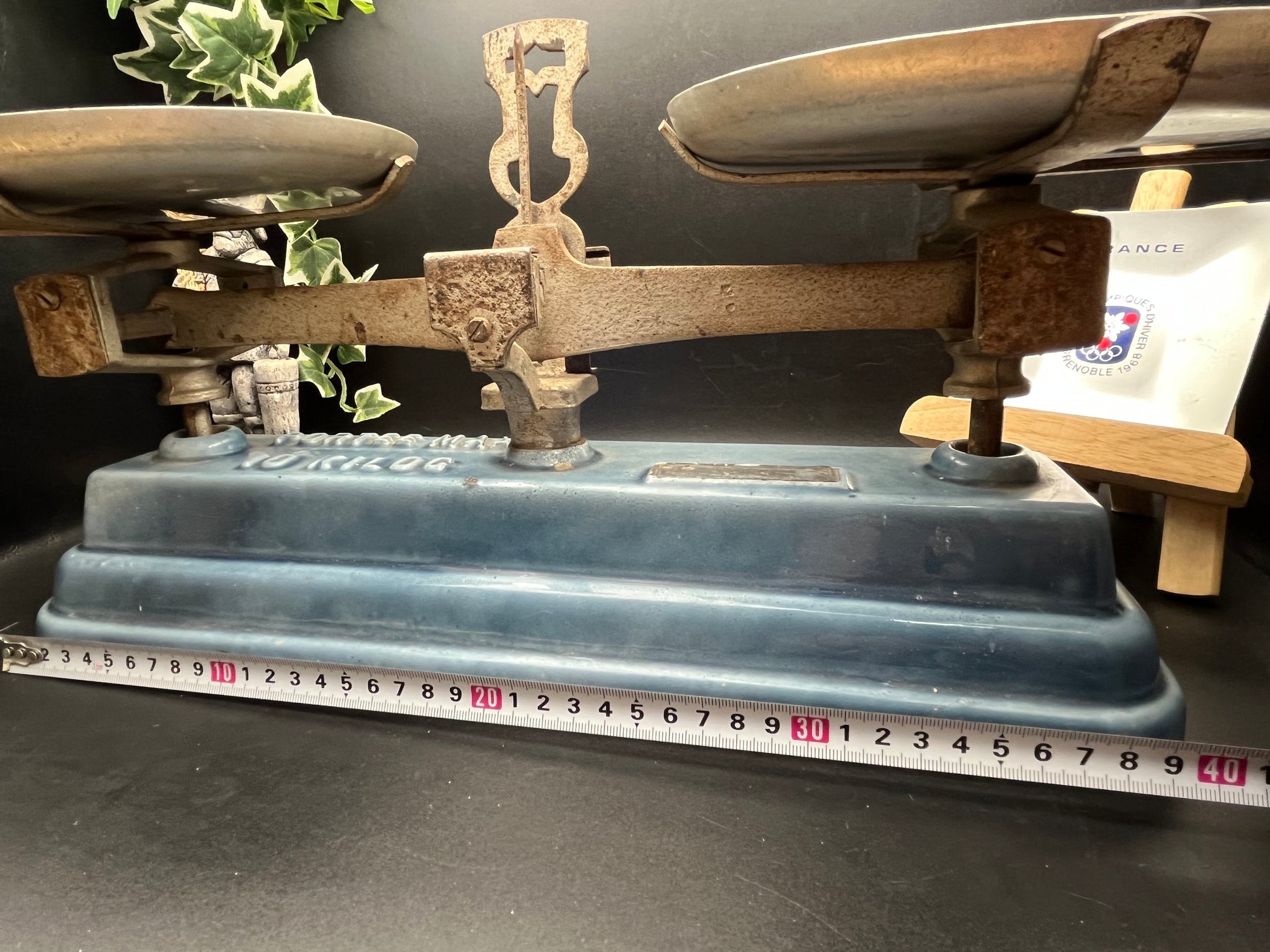 フランスで実際に使用されていた**アンティークの鋳鉄製バランススケール(天秤)**です。