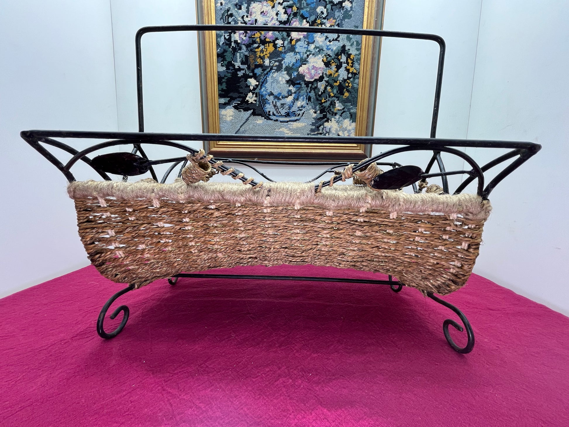 NEW フランスヴィンテージ アイアン × ラタン マガジンラック